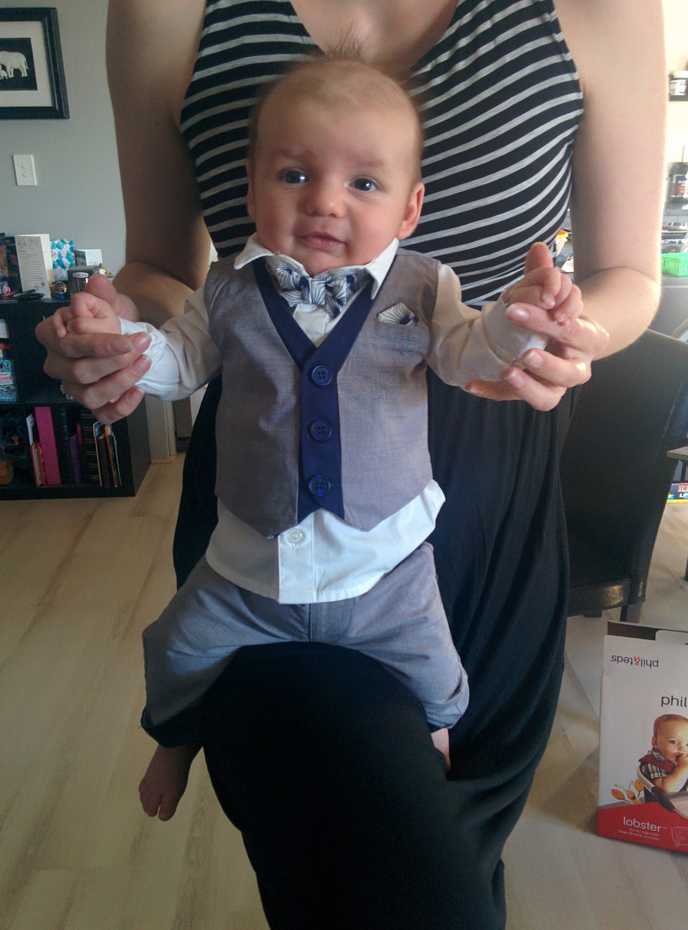 Suited Up Posted on August 29, 2015 by jussyslittleman Little Alfie at 10 weeks old, all suited up with no where to go haha. We had a fancy dinner at home while he slept in his super cute outfit 🙂 Share this: Click to share on X (Opens in new window) X Click to share on Facebook (Opens in new window) Facebook Like Loading... Related