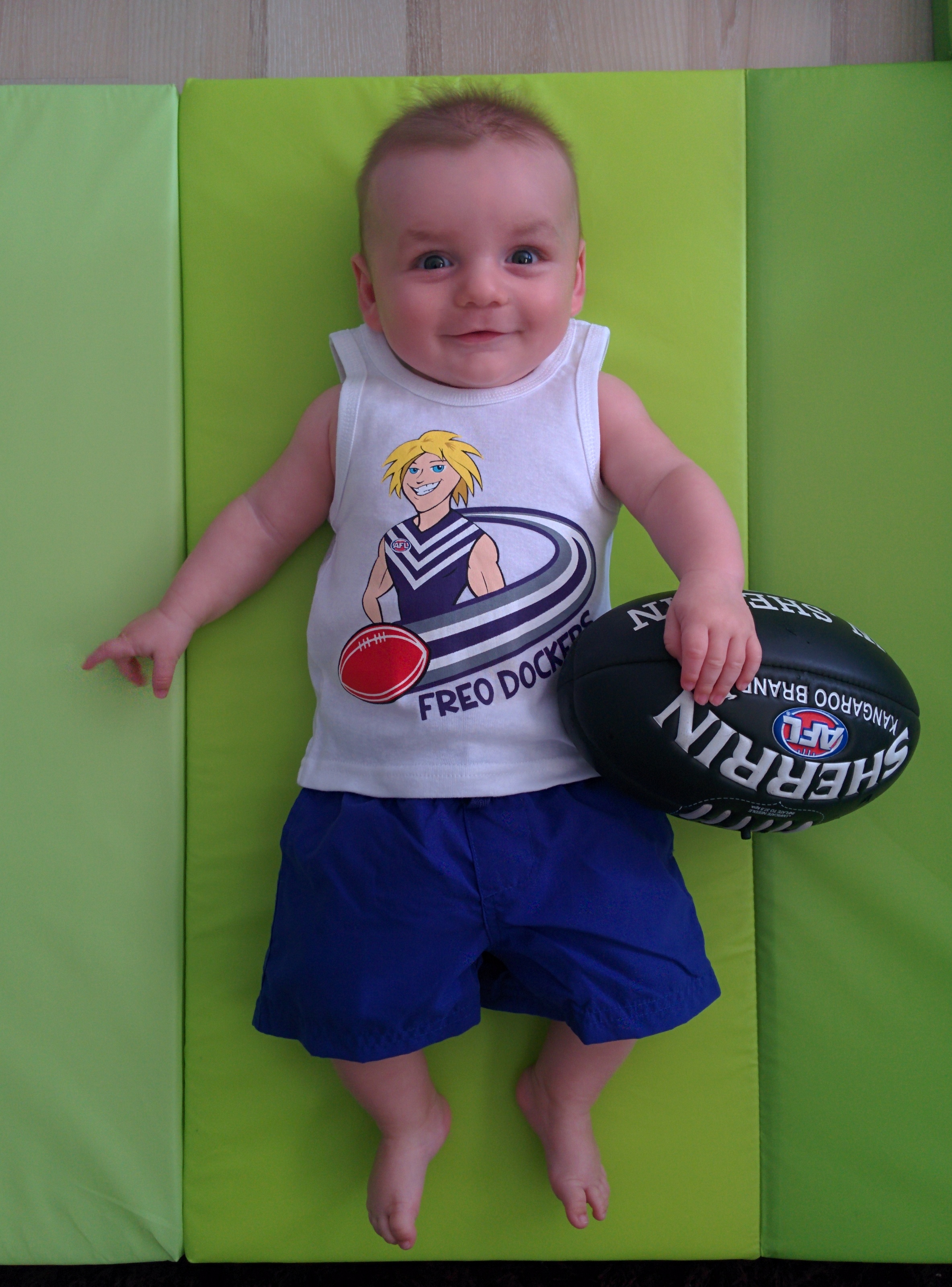 Even though we don’t really watch AFL very much, I couldn’t resist dressing our little man up in a Dockers outfit to celebrate them making it to the Semi Finals.