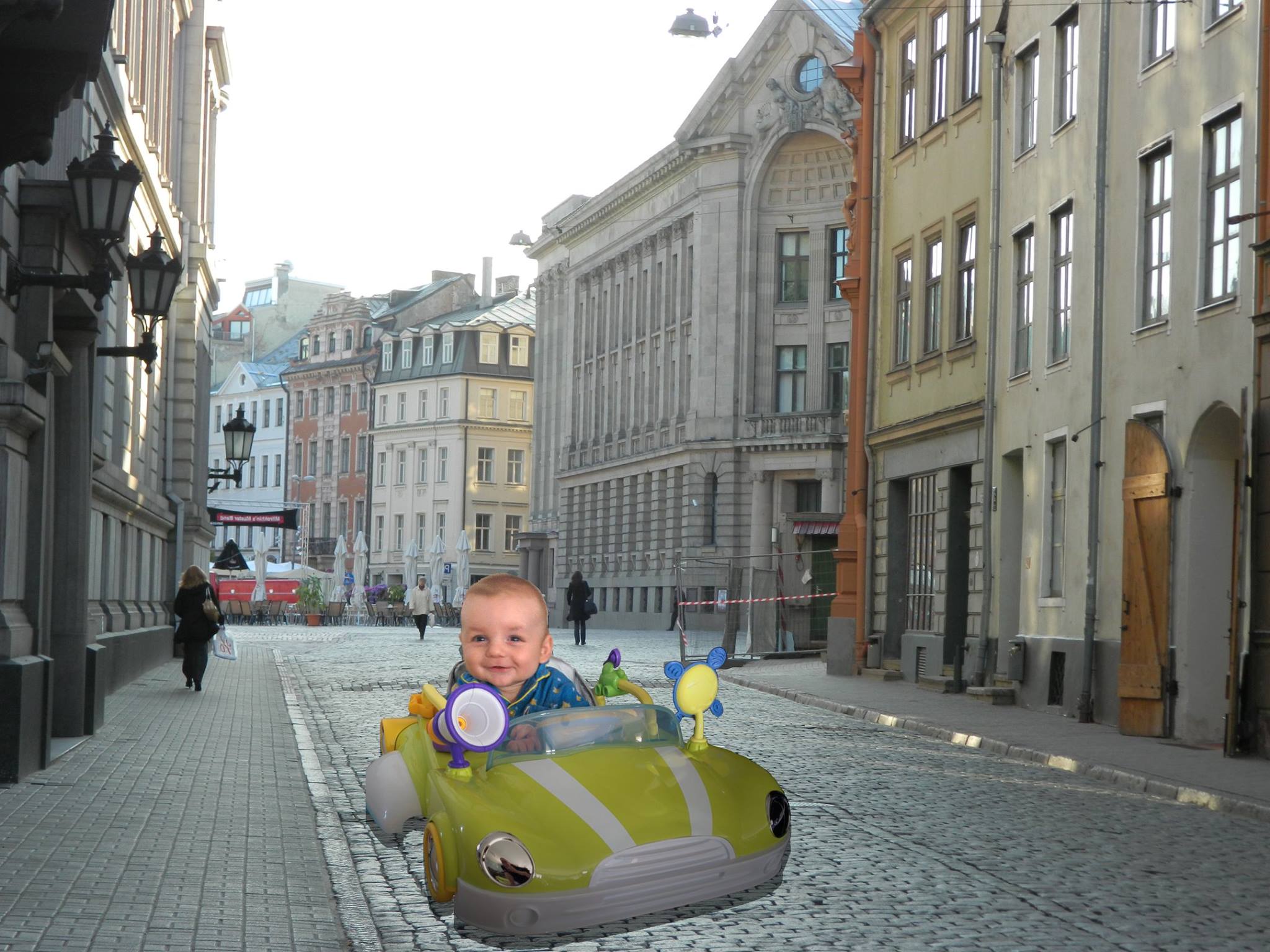 Since our little man loves standing and being upright, we decided to buy him a walker to help him. He absolutely loves it but can only go backwards at the moment. He smooshes his face and hands into the steering wheel which makes a “toot toot” sound or plays music.
