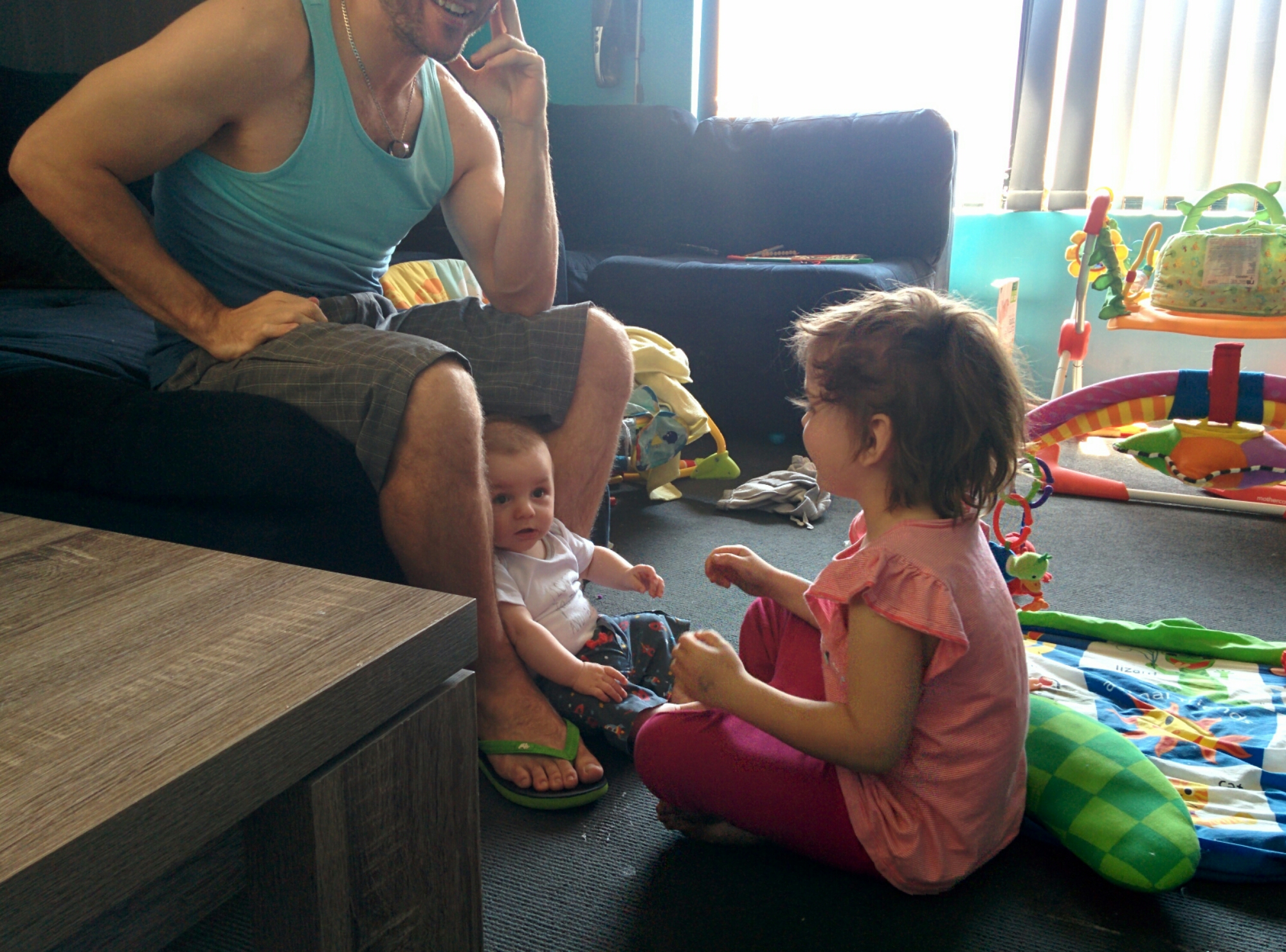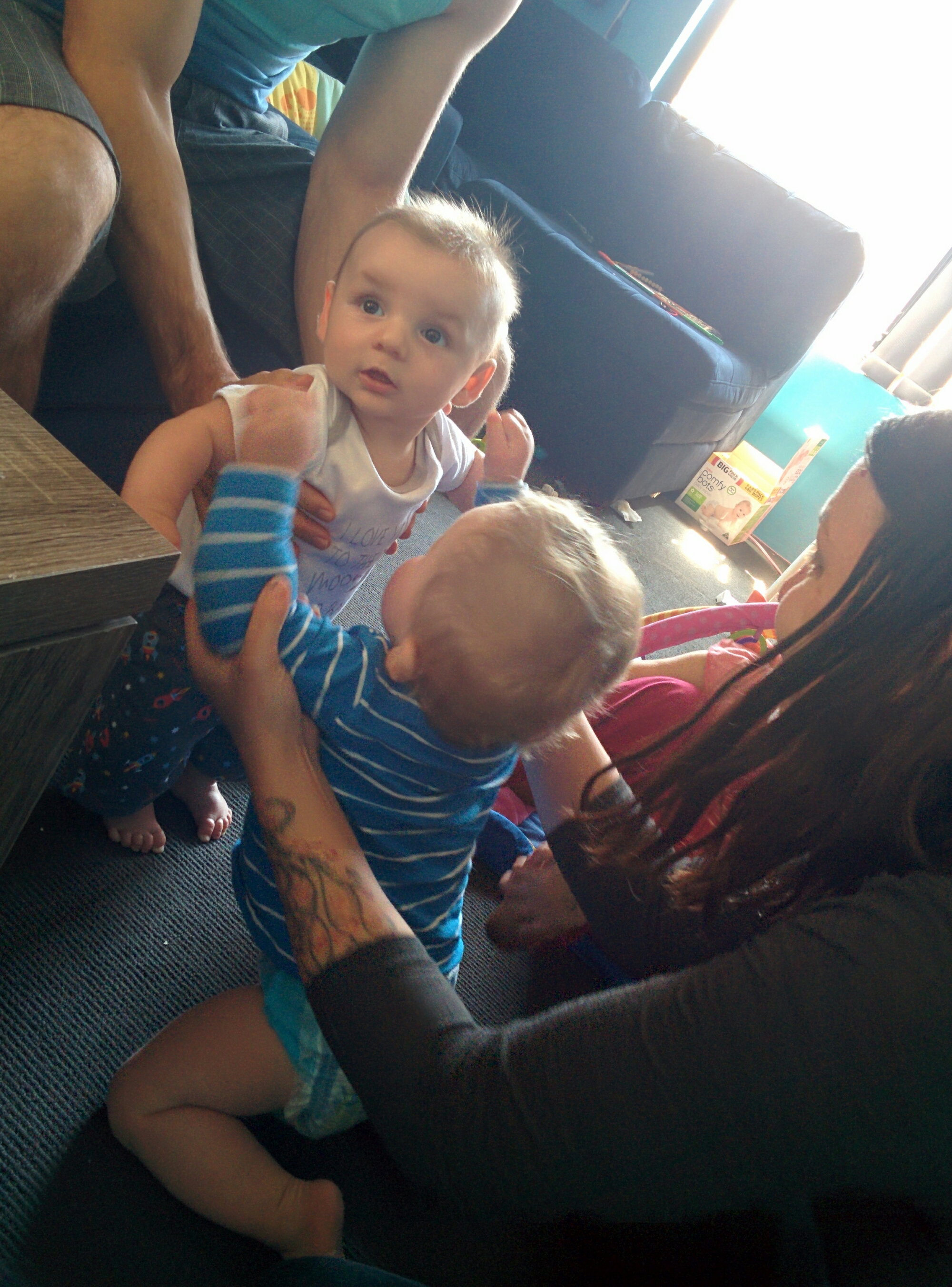 Our little man came for a visit to see his cousins π Ajay was very interested in Alfie and spent the whole time trying to touch him or steal the string from his pants.
