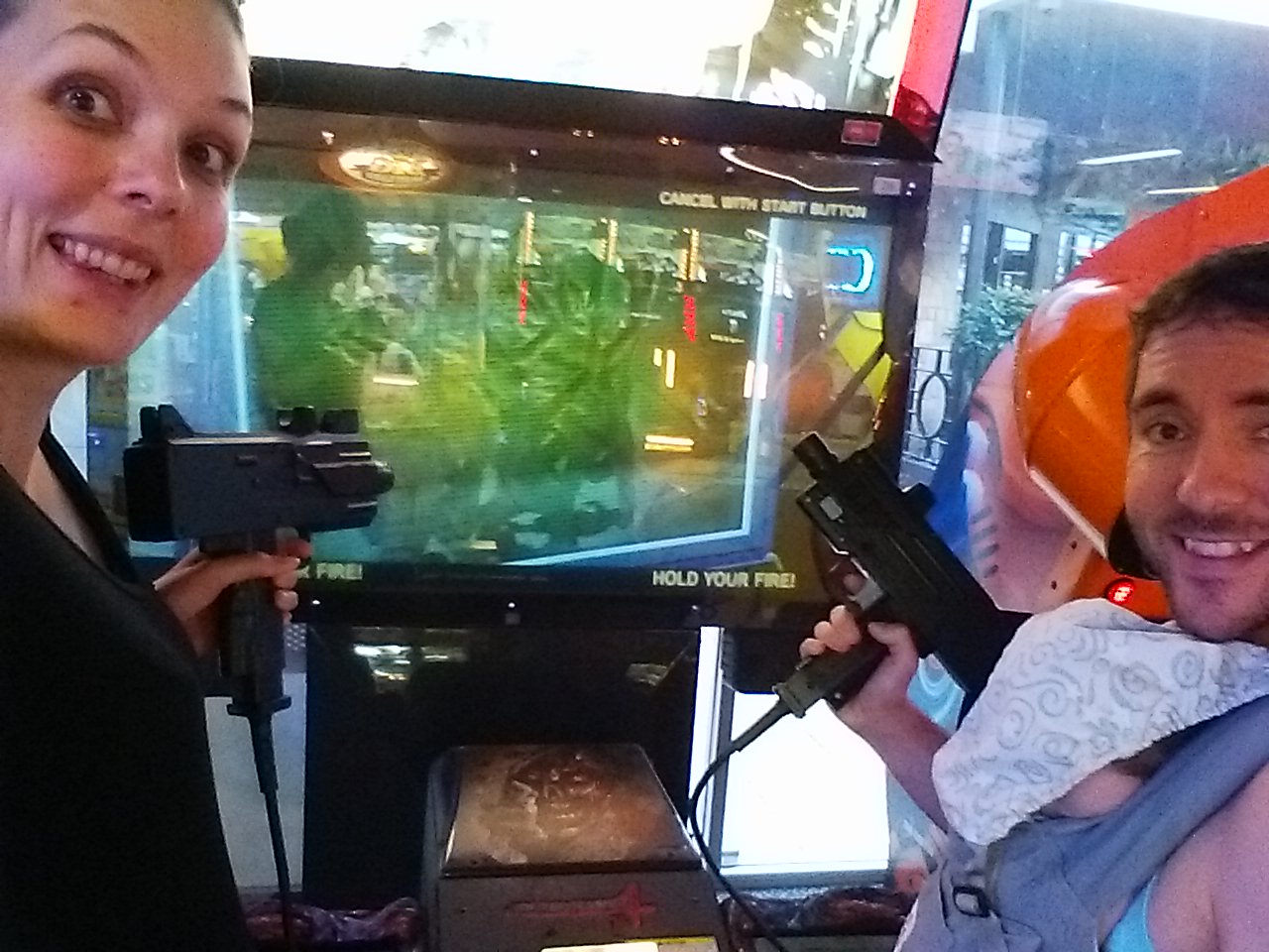 Alfie spent most of the dinner sitting with Mummy and trying to steal her food. He also flirted with some women at the table over by smiling. He got a bit fussy at the end of the dinner, so Daddy put him in the Ergo and he fell asleep while we played some games at TimeZone.