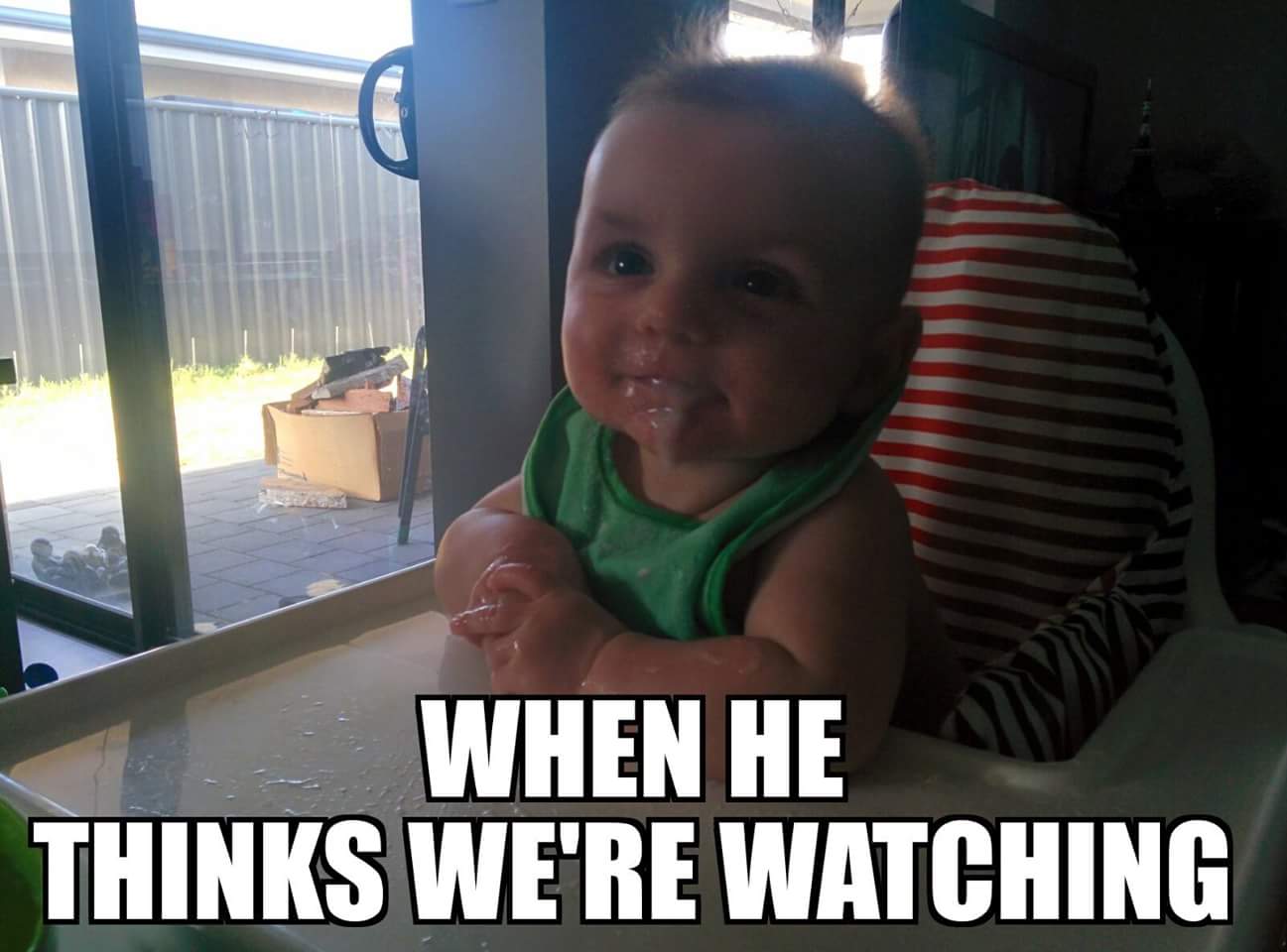 A few days later, he was fussy on the boob and was trying to steal my food so we decided to give him another go. This time we mixed the rice cereal with water and it was much thicker. He managed to swallow a few mouthfuls this time and really enjoyed it. We found that if you keep the spoon in his mouth, he likes to suck the food off and then swallows it.