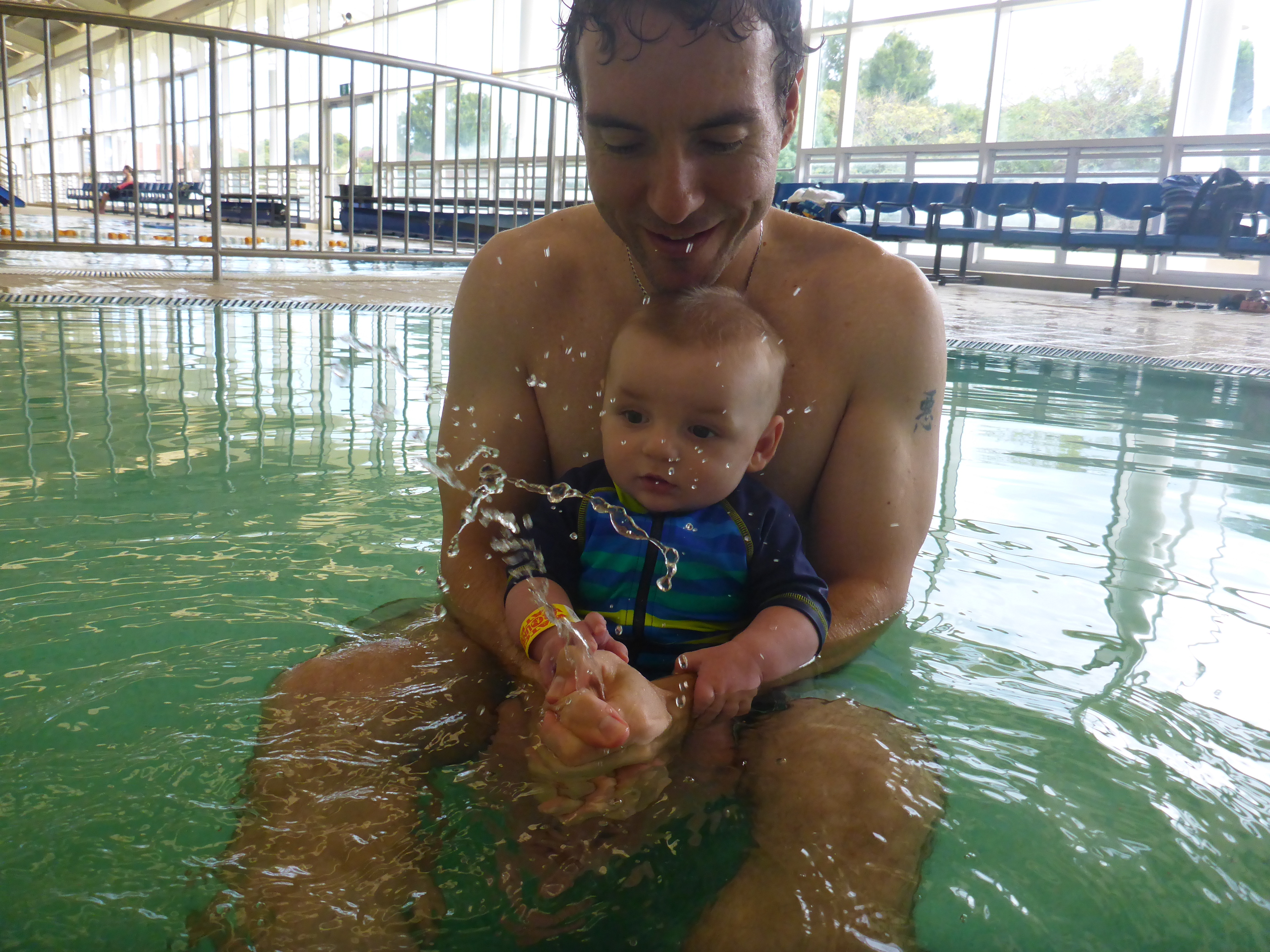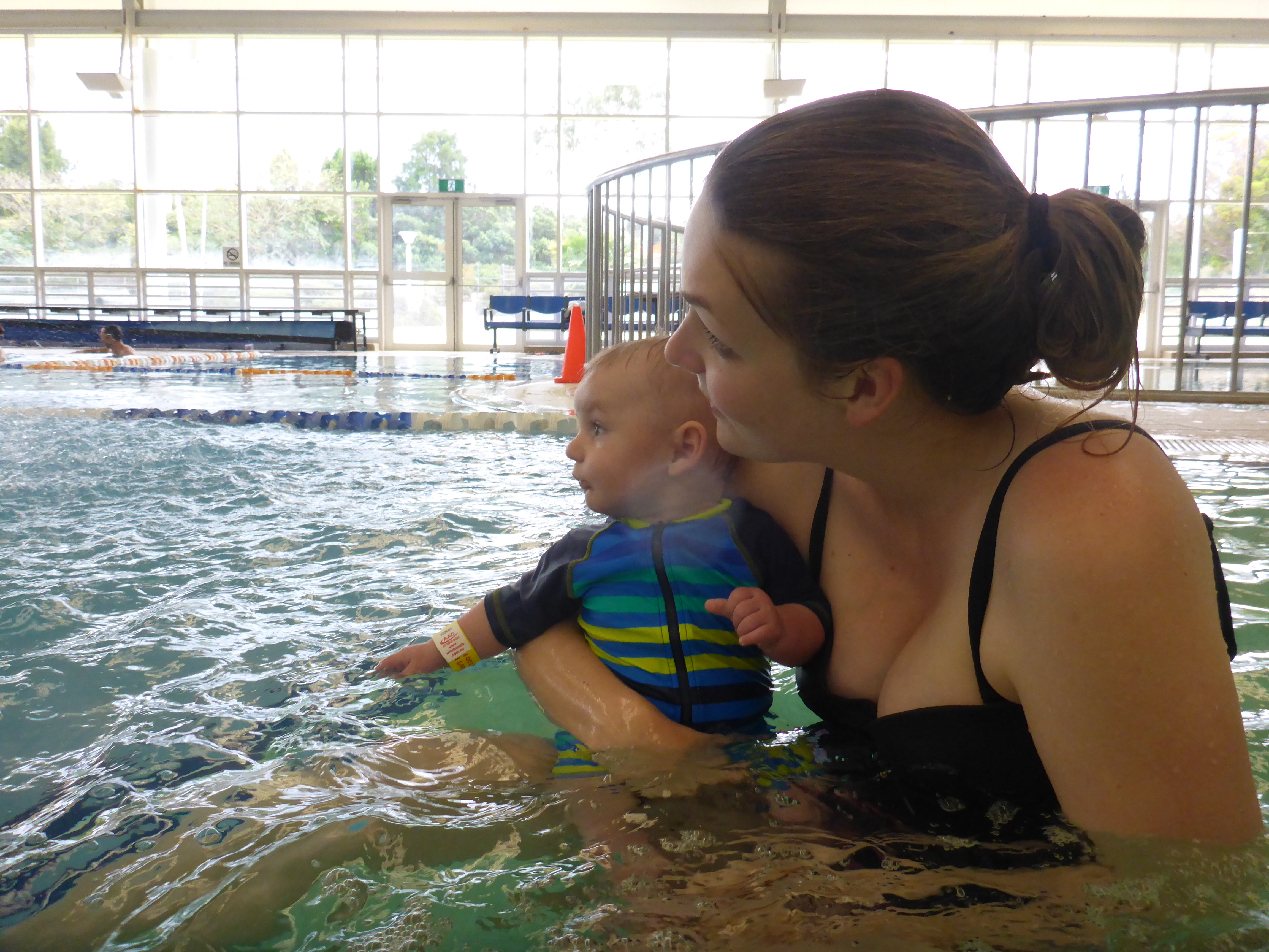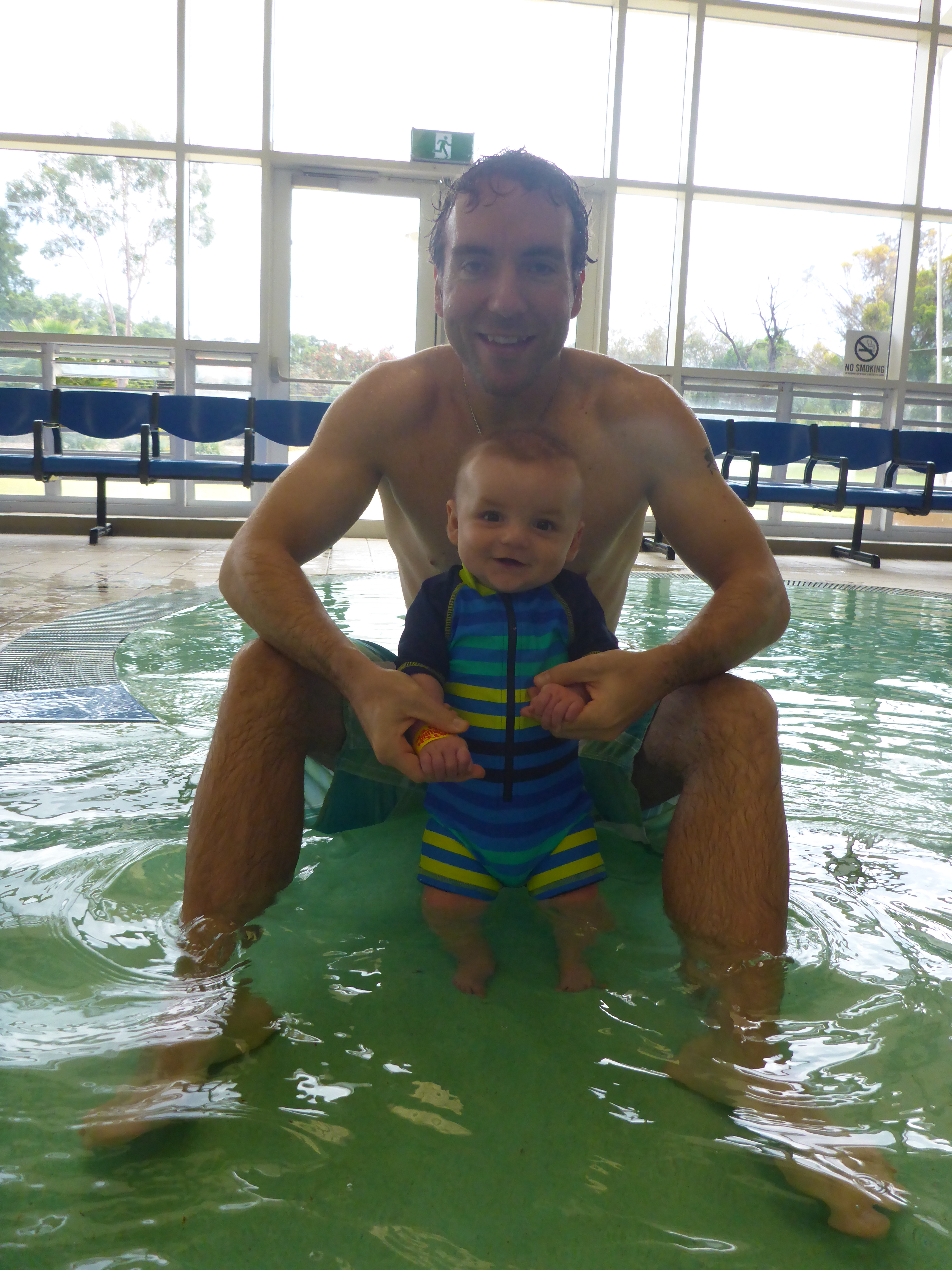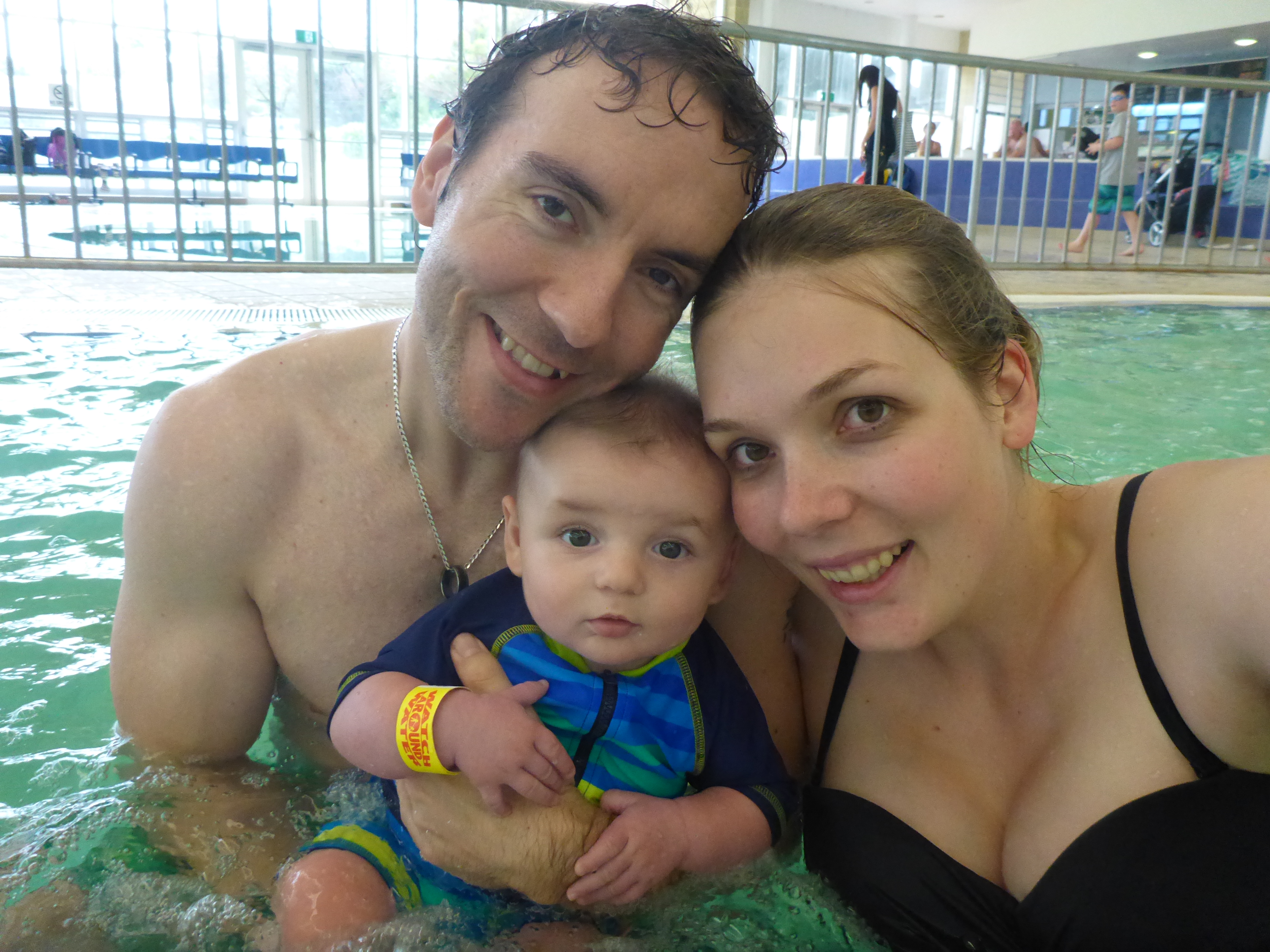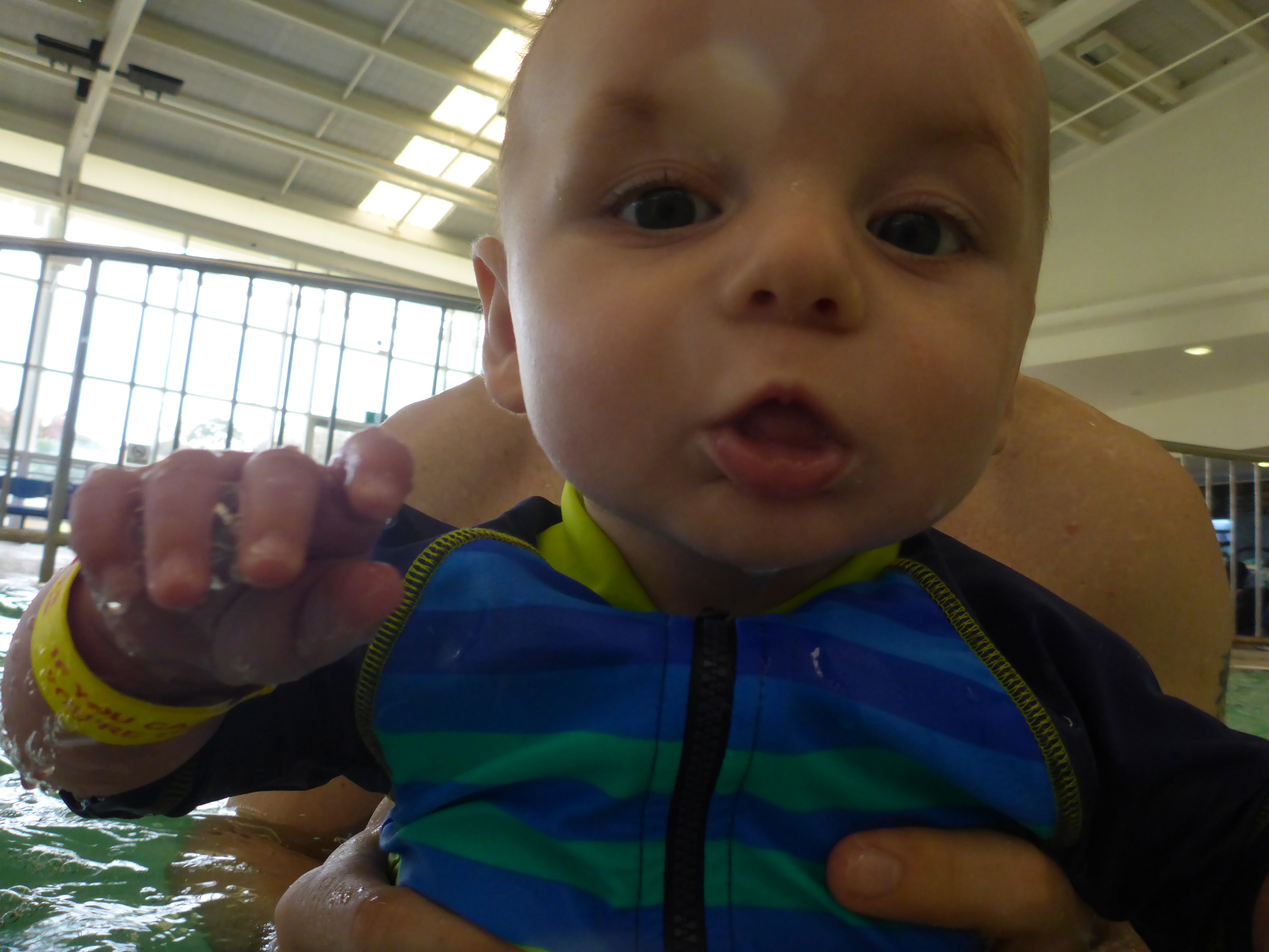 When Alfie was 20 weeks old, we took him swimming for the first time. He fell asleep on the way there so, while we were waiting for him to wake up, Daddy and I swam a lap each.
