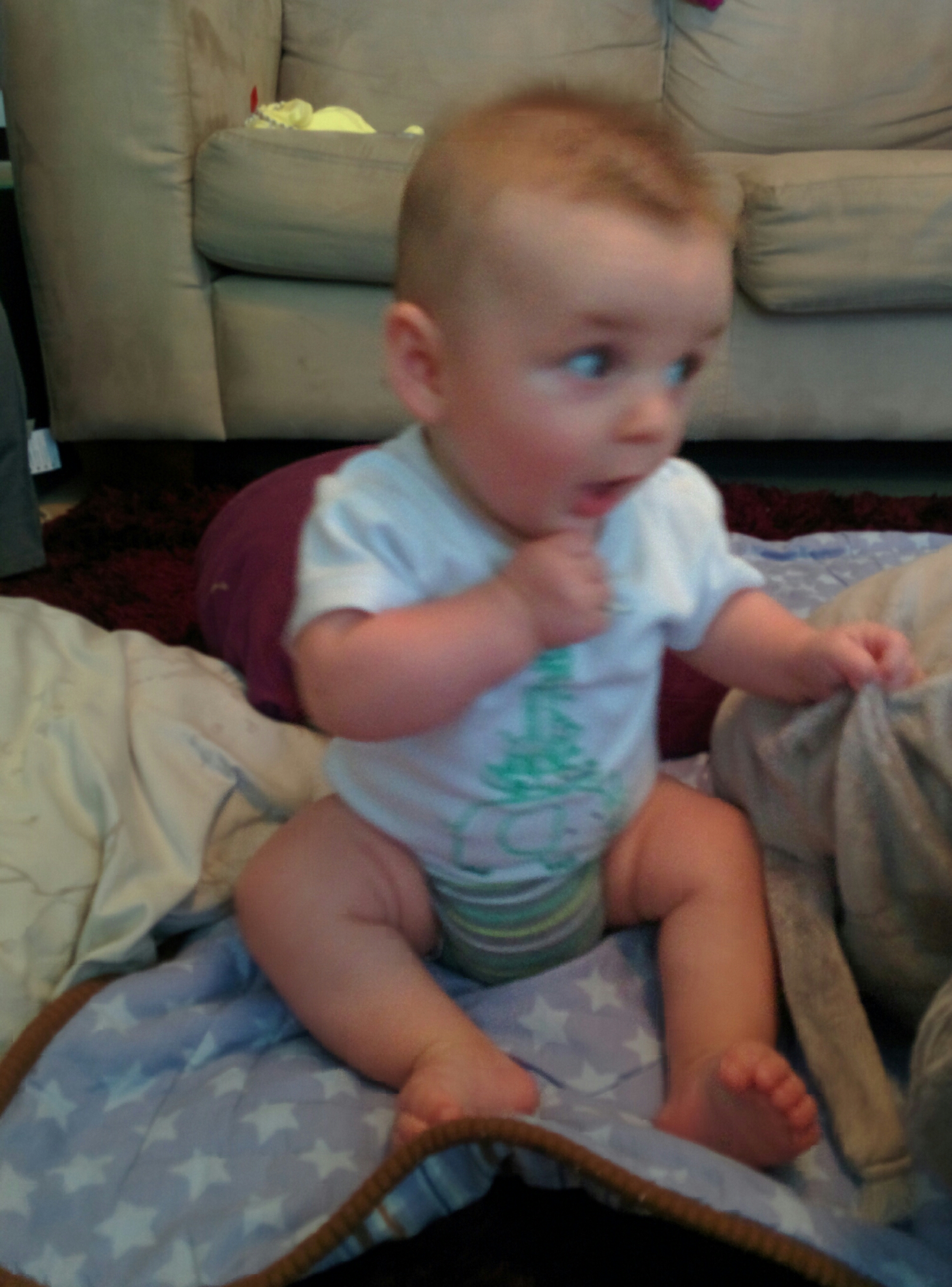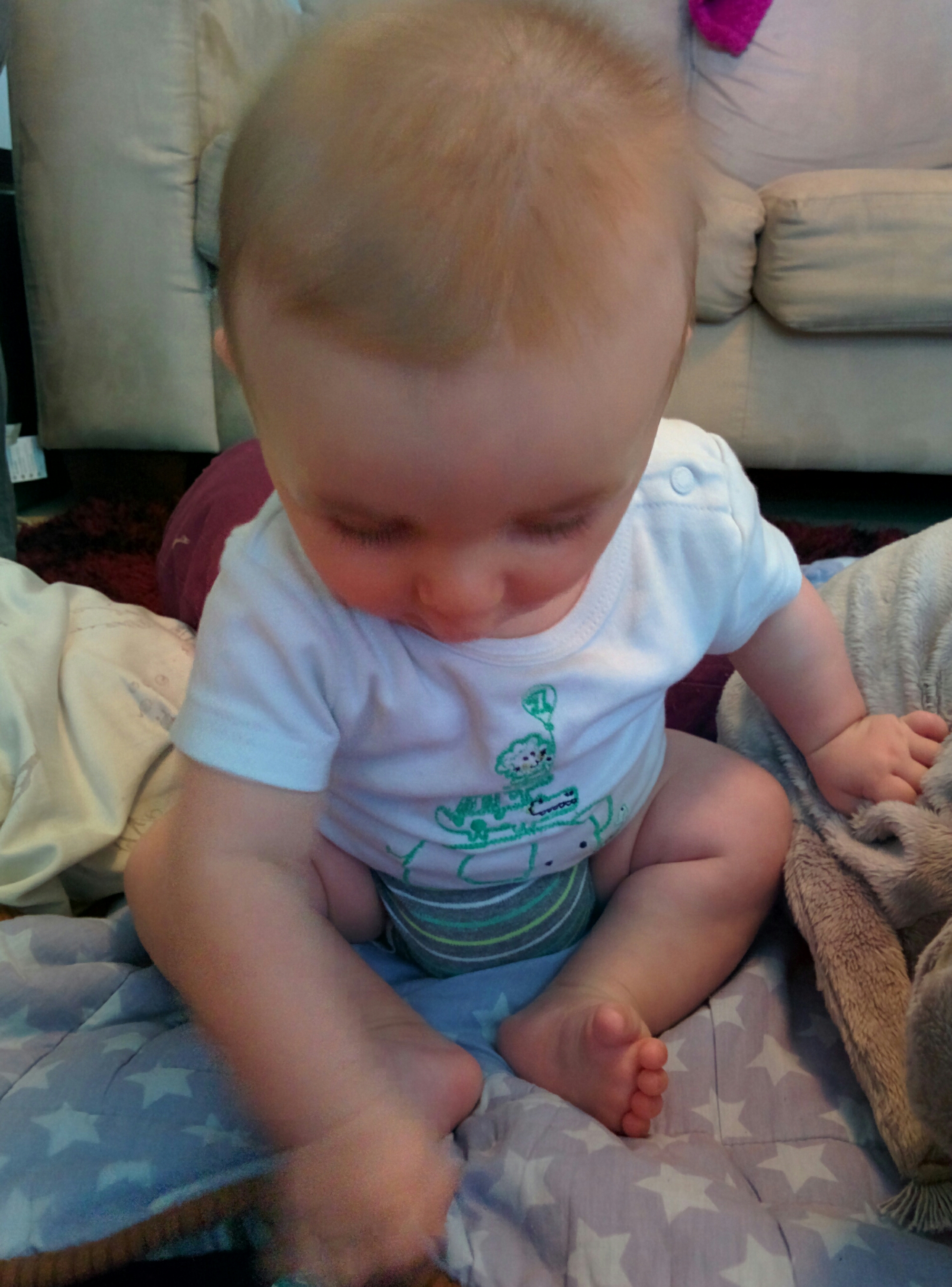 On the day that our little man turned 5 months old, he started sitting independently. It was like he just woke up that day and decided that it was the day to do it.