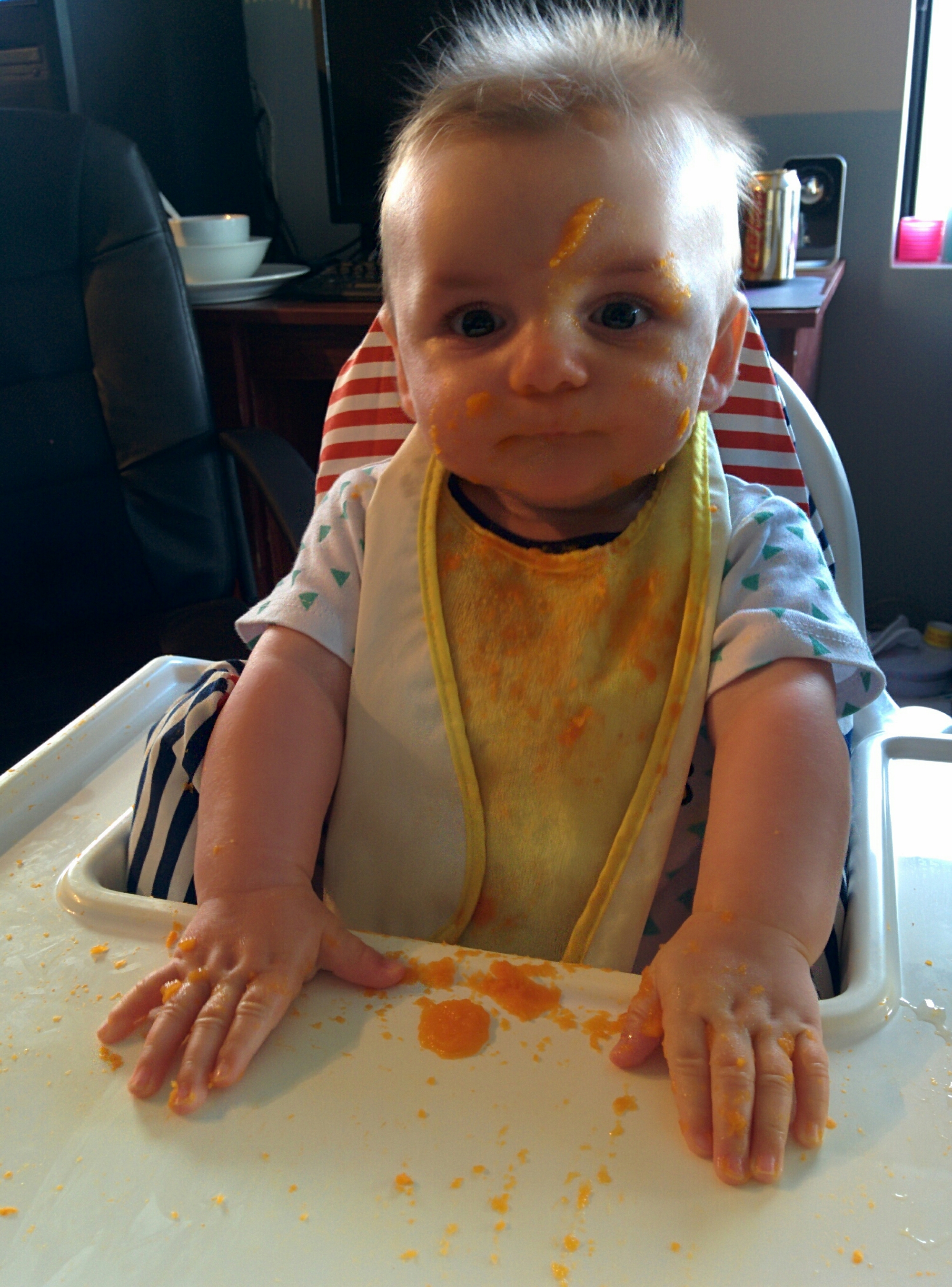 Carrots! Posted on November 14, 2015 by jussyslittleman Our little man isn’t much of a fan of carrots and somehow got completely covered in them during his dinner feed! Needless to say, he needed a wash after that haha. (This is the first time he started splashing in the water) Share this: Share on X (Opens in new window) X Share on Facebook (Opens in new window) Facebook Like Loading... Related