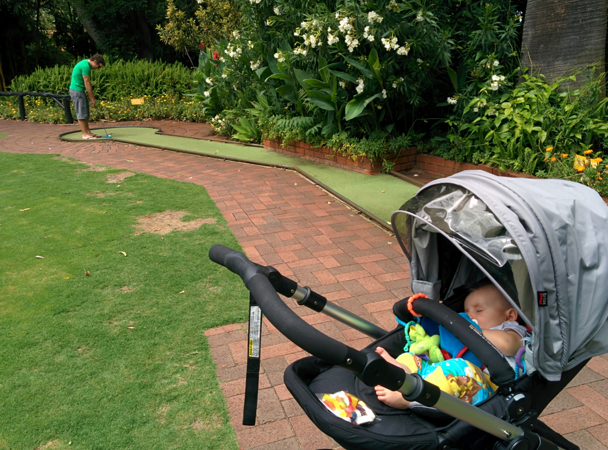 Alfie was such a good boy. He fell asleep at the end of our meal and then woke up about half way through the course. He was happy to just sit and chill in his pram while we played.
