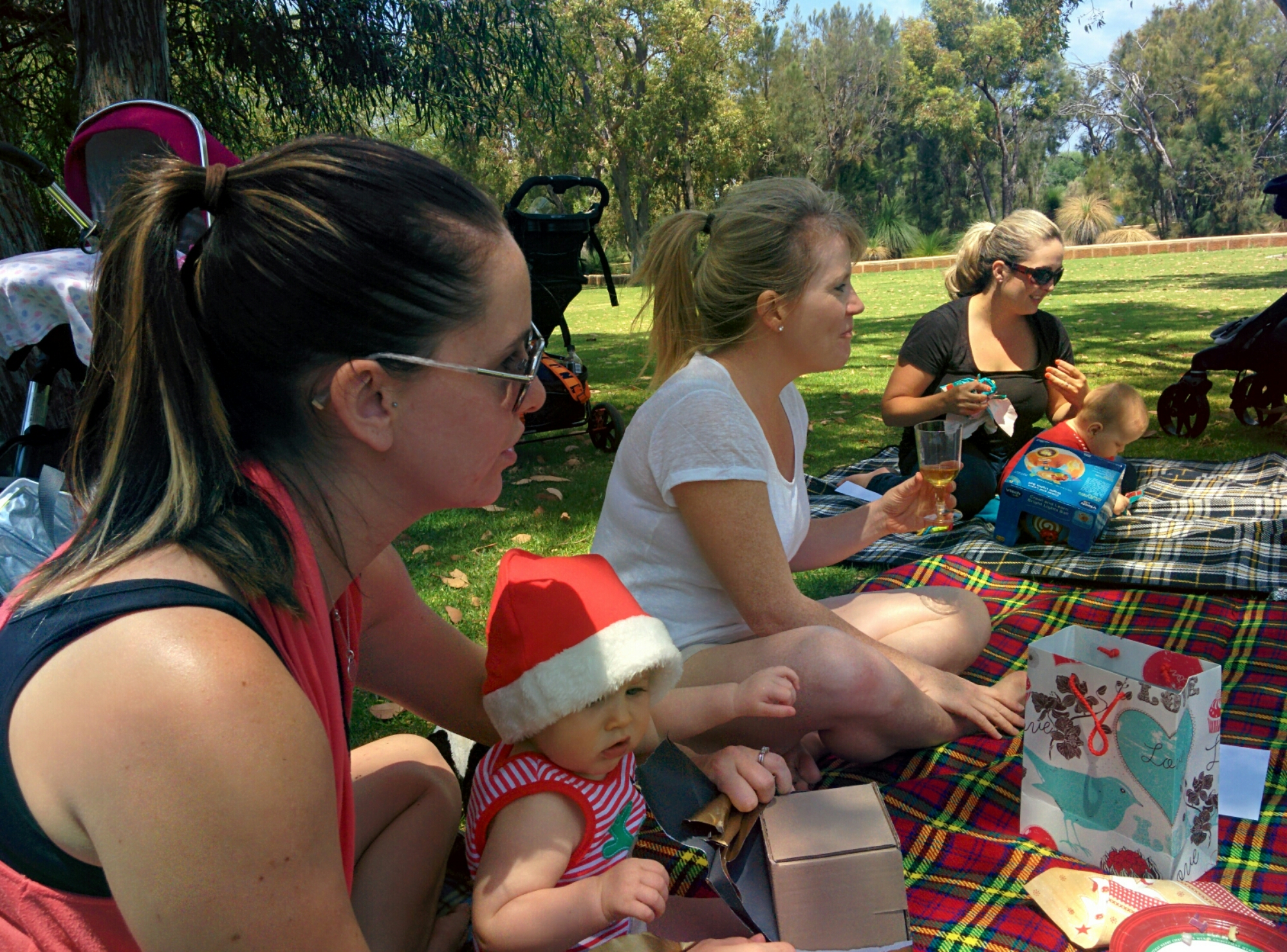 We had a Christmas party in the park with our Mothers Group. We had it a bit early because two of our mums and bubs are heading to the UK for Christmas and we wanted to have it when most people could make it.