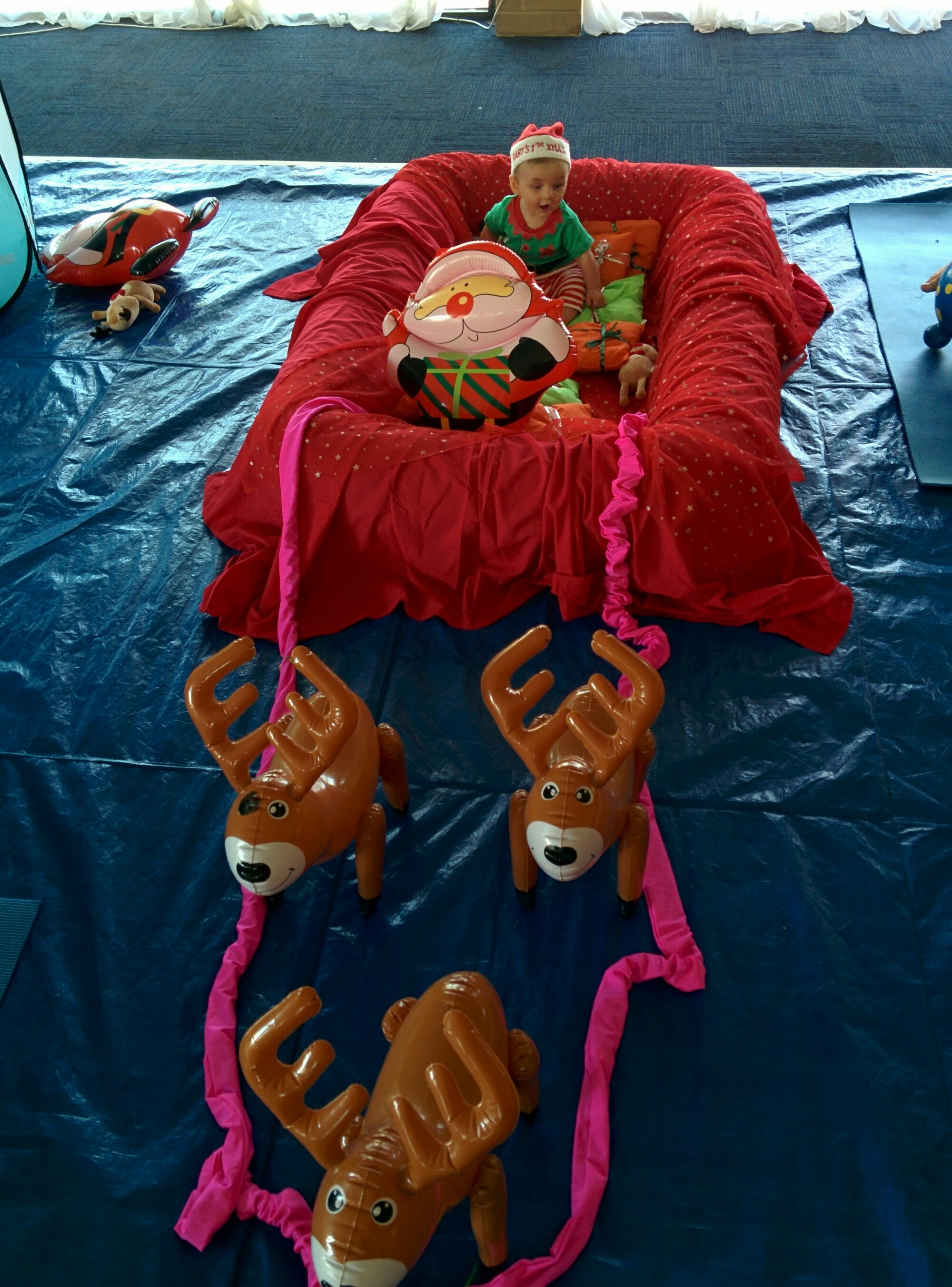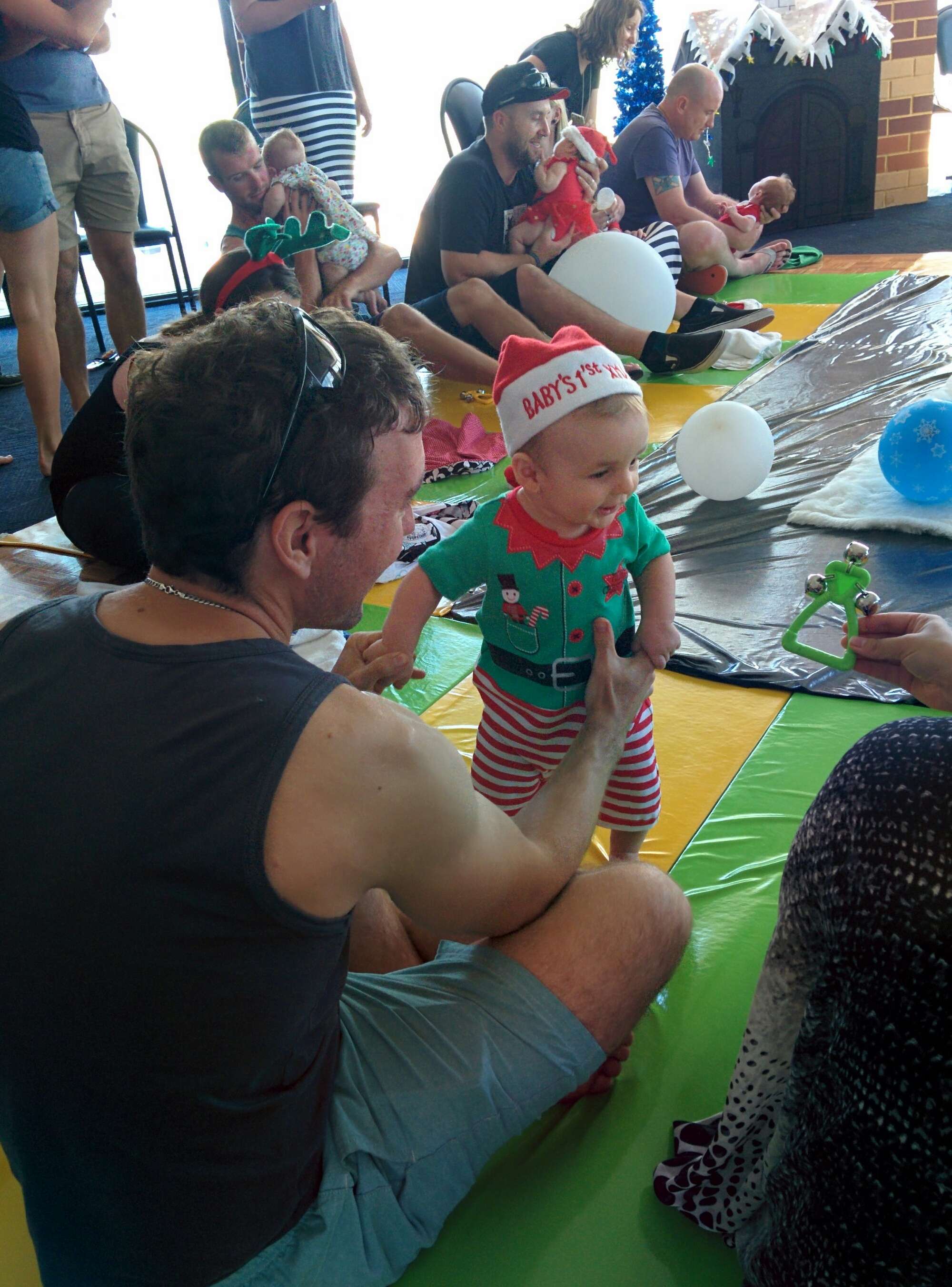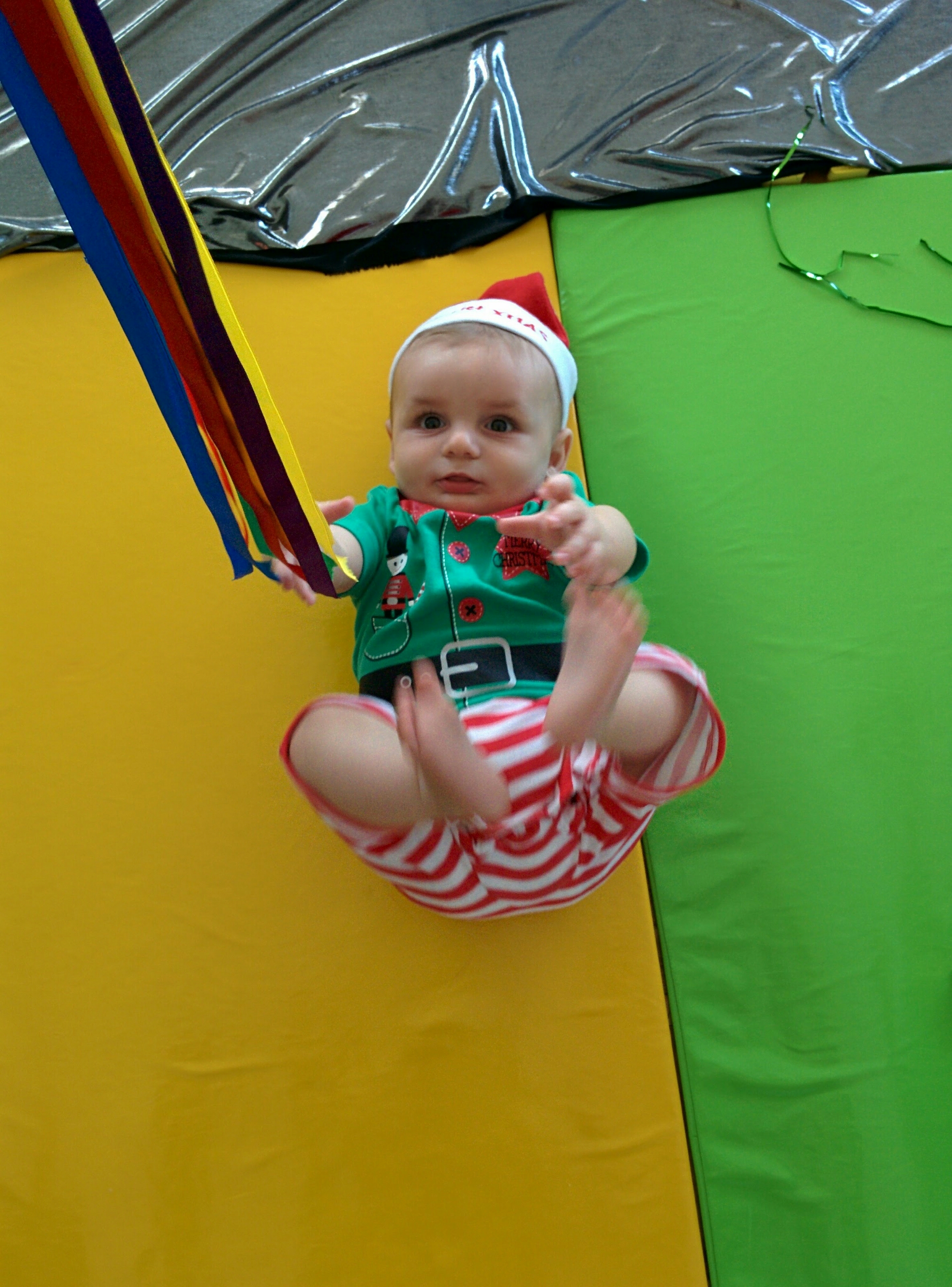We took our little man to his first Christmas party run by Baby Sensory. We all had a great time. There was a session first were all the mums and dads sat in a circle with their babies and sang songs, danced, bounced and looked at fun things.