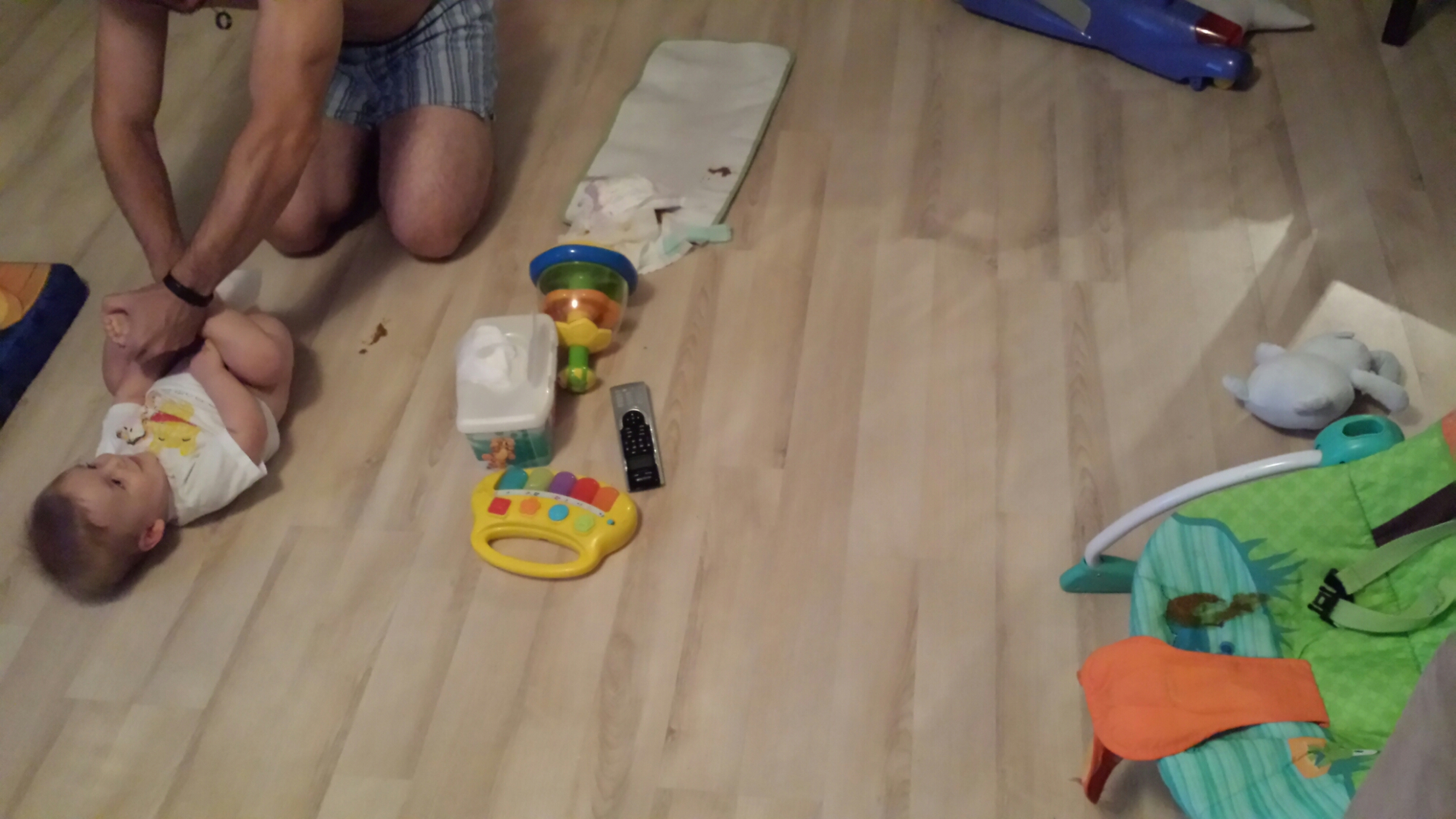 Poo Everywhere! Posted on February 16, 2016 by jussyslittleman Our little man did a big poo while eating his dinner in his chair, which leaked out a lot. Then Daddy tried to change him on the mat but he kept rolling and moving away lol. Share this: Click to share on X (Opens in new window) X Click to share on Facebook (Opens in new window) Facebook Like Loading... Related