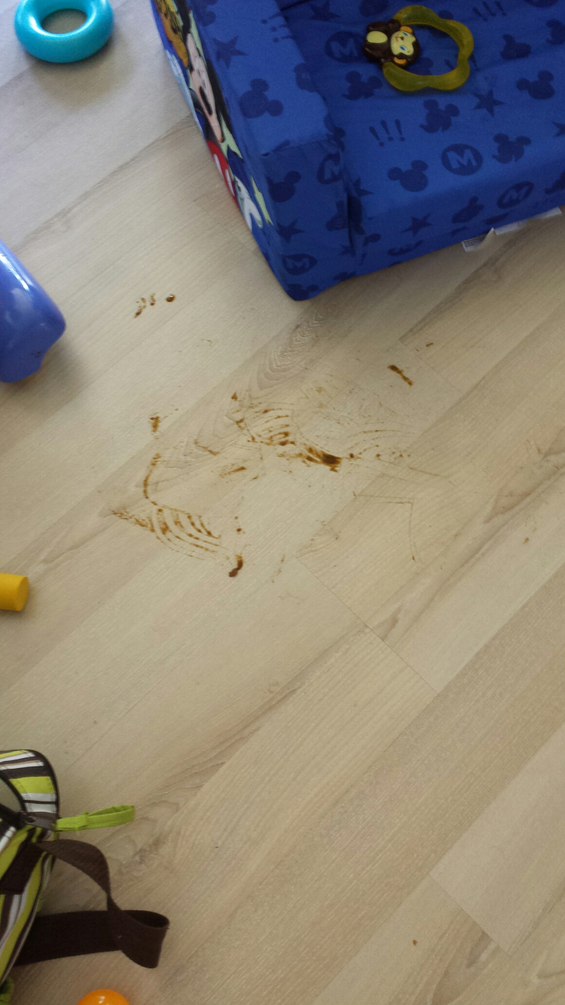 The floor and his little couch had poo finger marks all over it. Daddy washed Alfie in the shower while I managed the floor situation lol