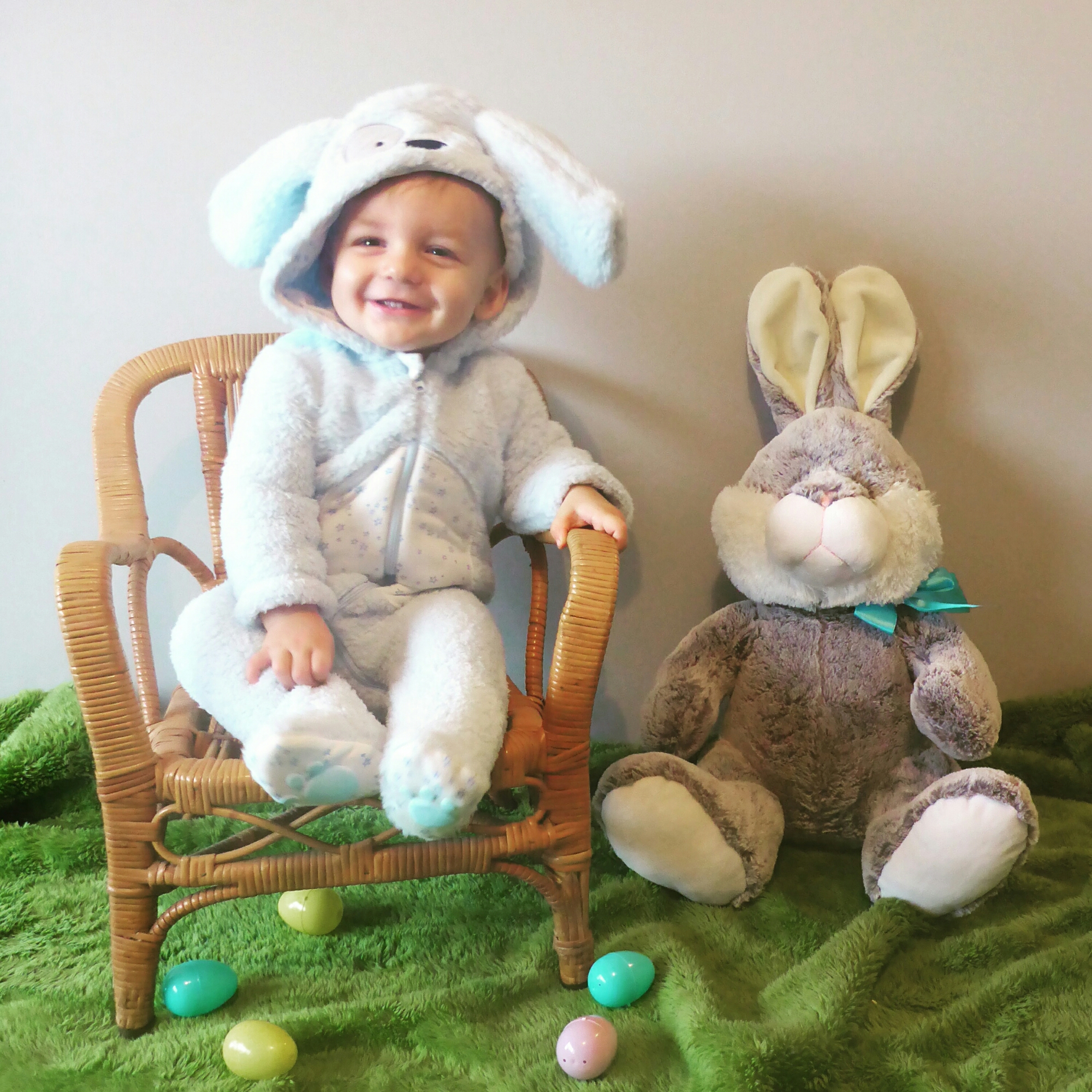 Here is my favourite picture from my Easter Photo shoot with our little man 🙂 I used it for our Easter gifts and posted it on Facebook and Instagram. I had so much fun dressing him up in that bunny suit. He felt like a big, cuddly, teddy bear. 🙂